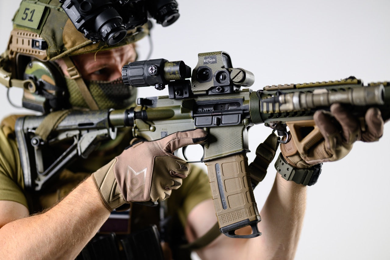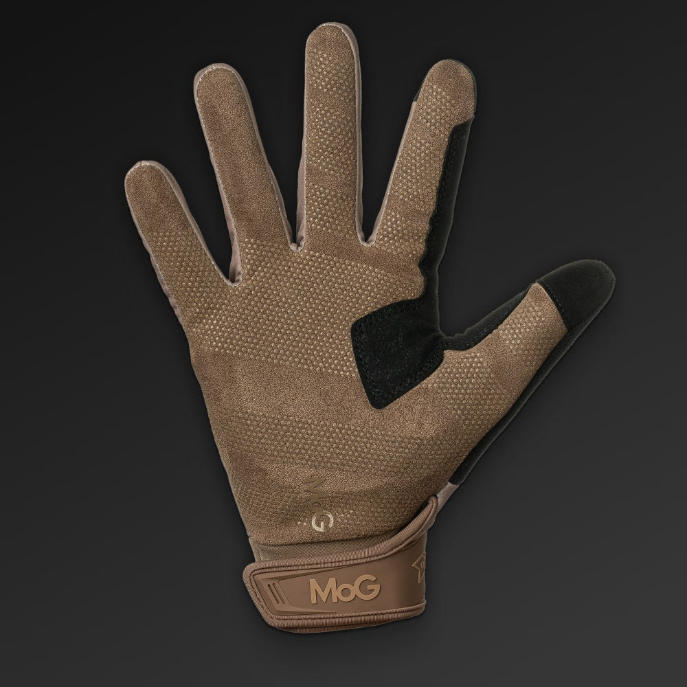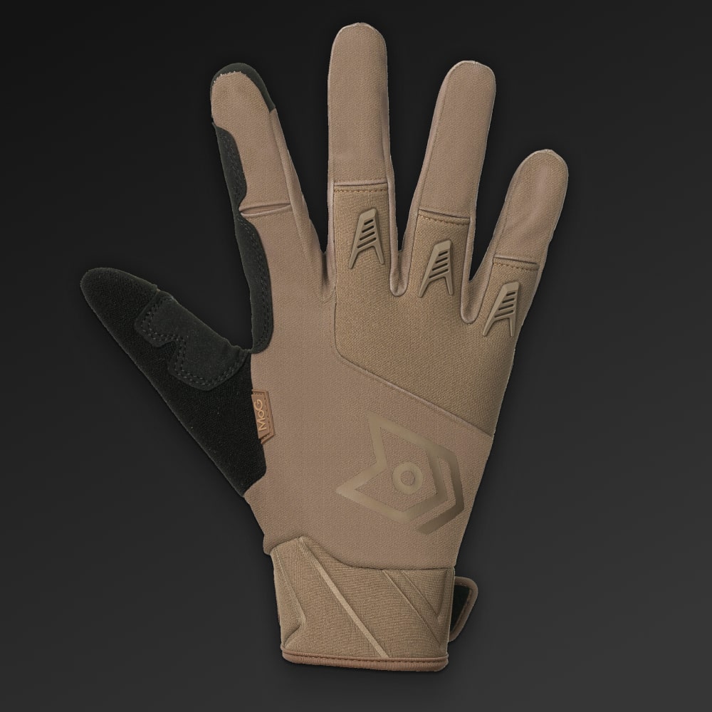 Cold protective, tactical glove from Masters of Gloves. Slightly lined for winter use, but snug enough to enable weapons handling. Neoprene cuff on the inside. Windproof and water resistant. Touchscreen compatible and comes with a loop for attachment to kit. Coyote brown.