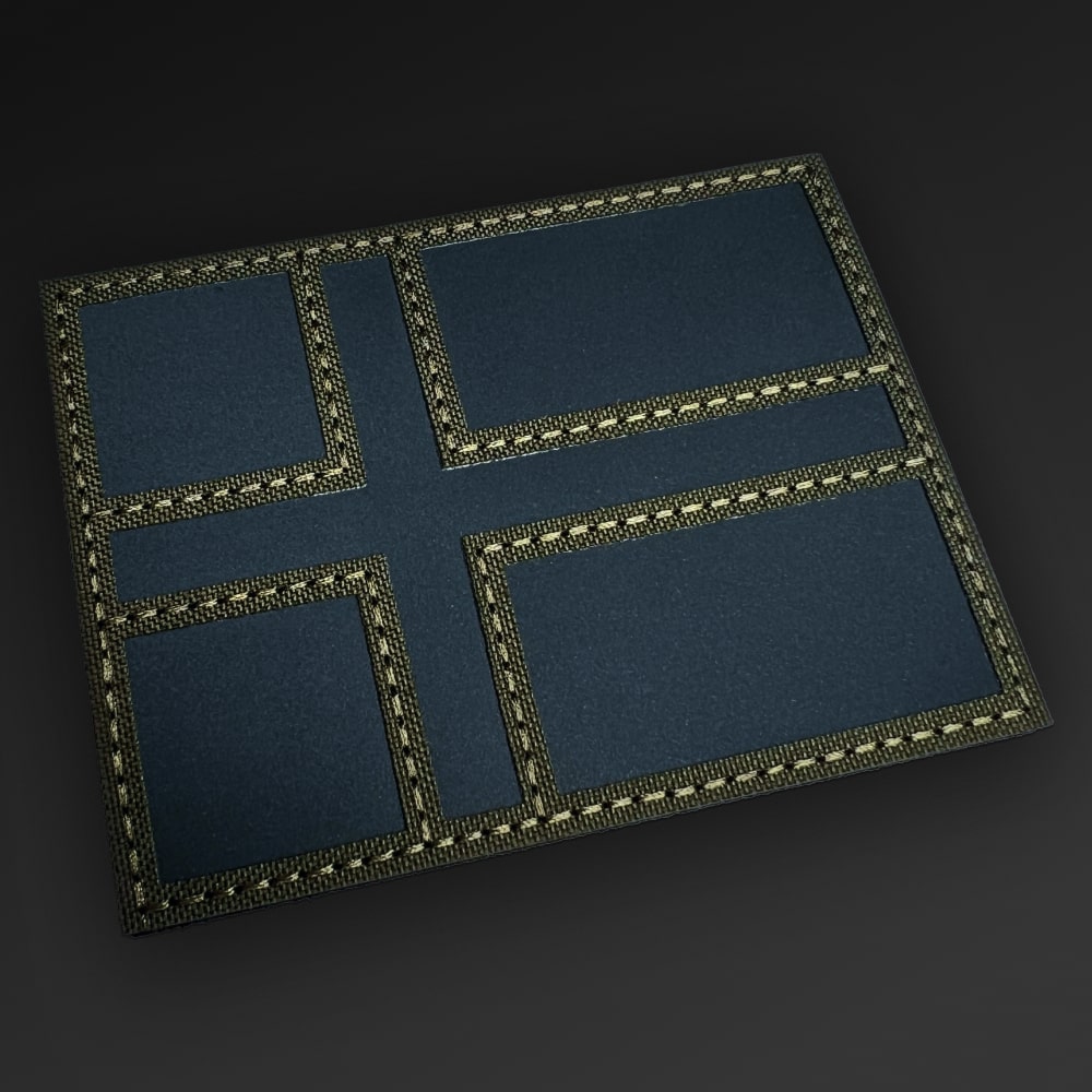 Olive green laser cut patch with velcro backing. Available in reflective and non-reflective. Dim: 100 x 75 mm.