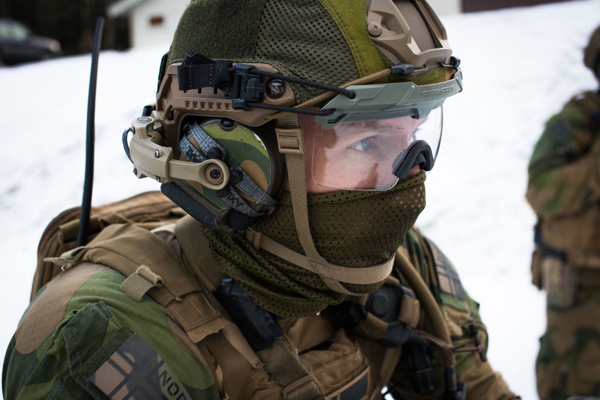 Hals i elastisk olivengrønt meshstoff. Søm ved nedre åpning. Finnes i to størrelser for bedre passform.