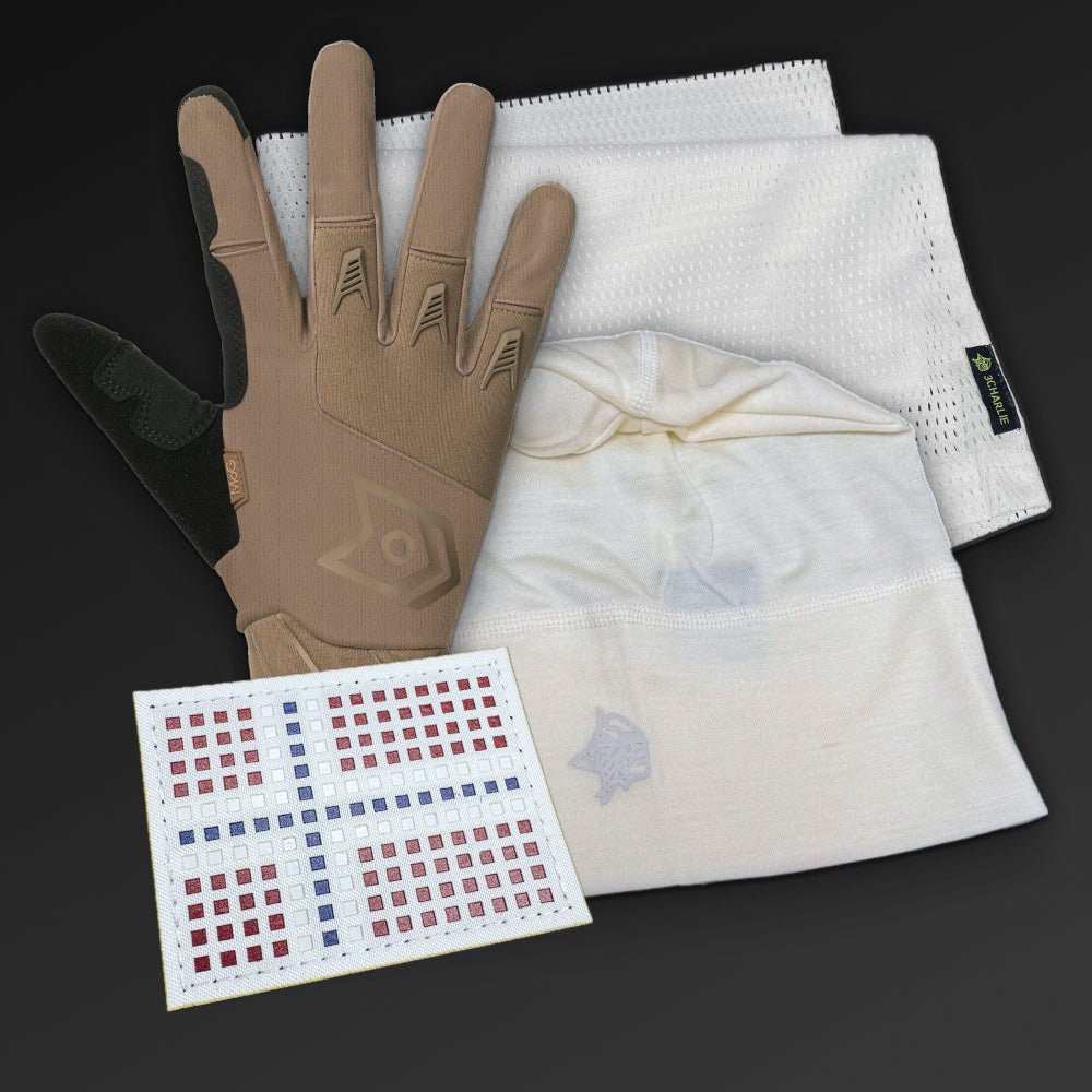 Polar hansker fra Masters of Gloves, kombinert med vinterpatch, vinterbuff og beanie i merinoull til rabattert pakkepris.
